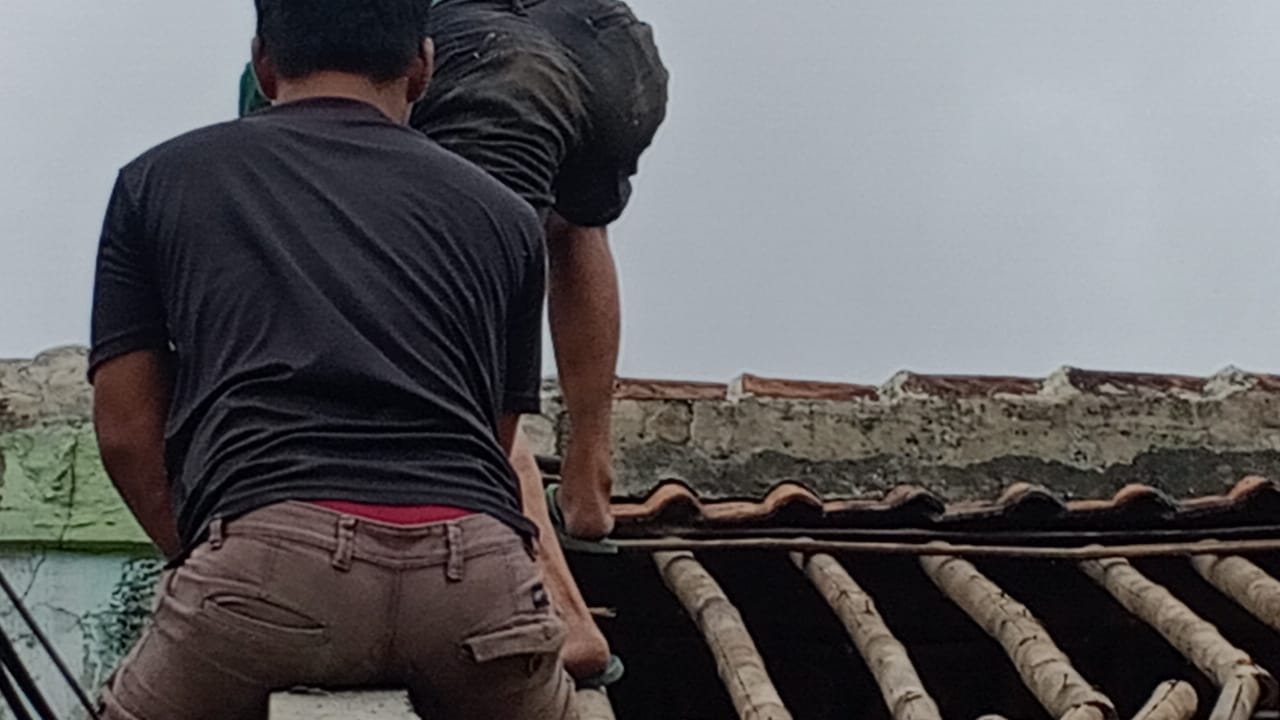 Tangerang, Genteng dan atap rumah tua milik seorang warga di wilayah Kelurahan Cimone Jaya , Kec Karawaci, Kota Tangerang sudah lama rusak , Setiap muslim penghujan isi rumah basah dan tergenang air hujan . terlebih bila saat hujan deras.