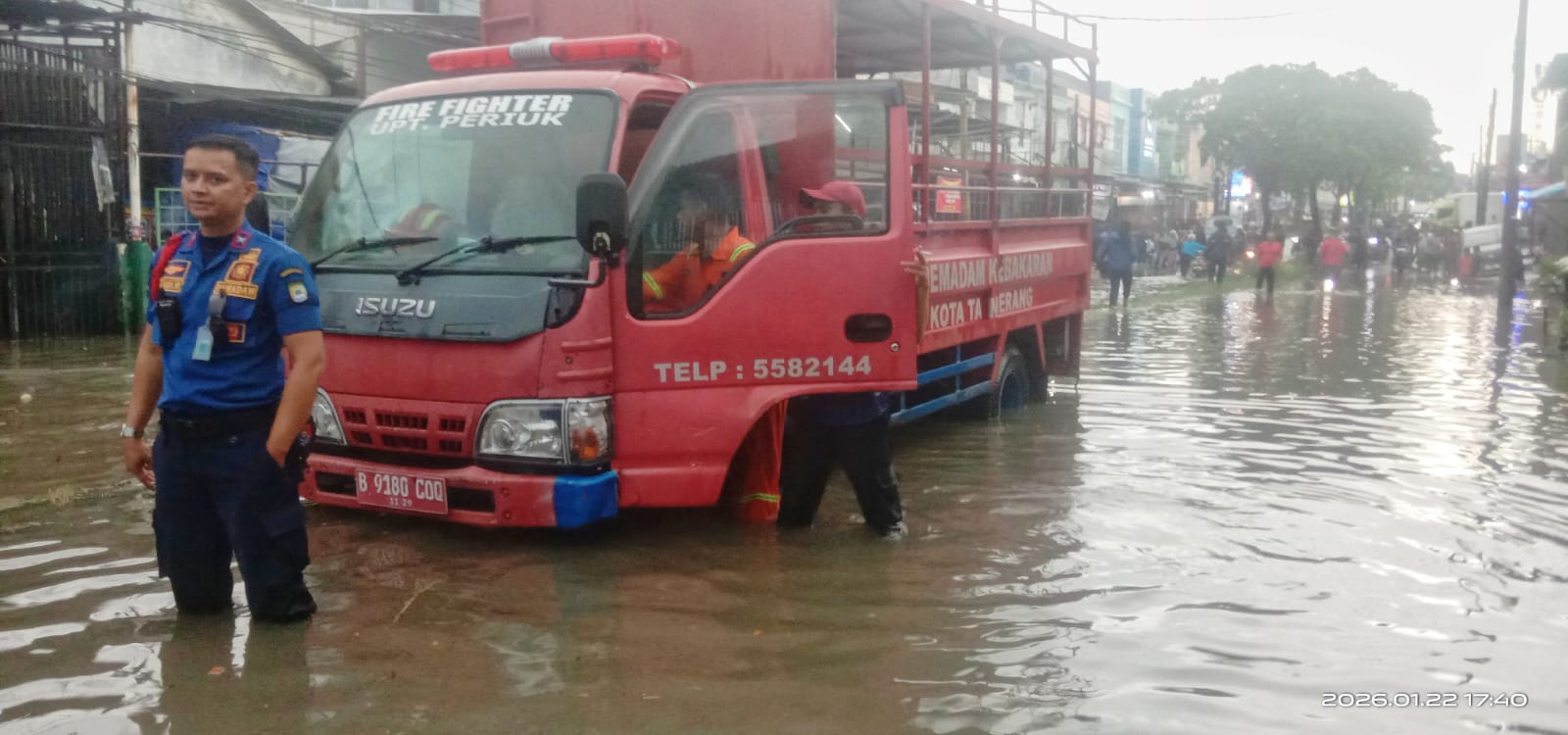 KOTA TANGERANG — Hujan dengan intensitas tinggi yang mengguyur wilayah Kota Tangerang pada Rabu sore (22/1/2026) menyebabkan banjir di sejumlah titik di Kecamatan Periuk. Genangan air terlihat merendam ruas jalan utama hingga mencapai ketinggian lutut orang dewasa.