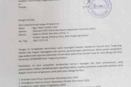TANGERANG SELATAN – Dewan Pimpinan Daerah (DPD) Aliansi Wartawan Independen Indonesia (AWII) secara resmi mengajukan permintaan audit investigatif kepada Inspektorat Daerah Kota Tangerang Selatan mel...